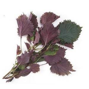 Perilla is the common name of the annual herbs of the genus Perilla of the mint family, Lamiaceae. In mild climates, the plant reseeds itself. There are both green-leafed and purple-leafed varieties, which are generally recognized as separate species by botanists. The leaves resemble stinging nettle leaves, but are slightly rounder in shape. Its essential oils provide for a strong taste whose intensity might be compared to that of mint or fennel. It is considered rich in minerals and vitamins, has anti-inflammatory properties, and is thought to help preserve and sterilize other foods. Like basil and coleus, it is a member of the mint family.